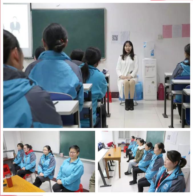 在介紹服飾禮儀方面知識時,皖嫂家政公司的全體員工穿著工作服聽課,受到了羅老師的夸贊:員工著裝的整齊體現了皖嫂家政良好的企業形象和精神風貌。