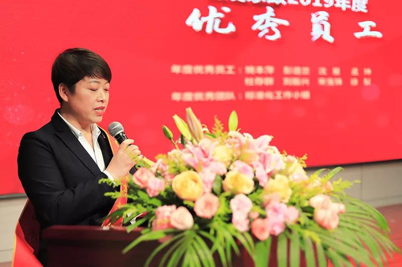 優秀員工代表孟老師在臺上說道, 非常感謝皖嫂提供的就業機會,讓她快速成長為一名專業的母嬰顧問。身為家政服務行業一員的我,能夠在這個行業里發光發熱,并幫助到產婦和寶寶、幫助到女性同胞就業,給她帶來莫大的成就感和至高無尚的榮譽感,在2020年,一定會更加努力,為公司創造更大的價值。