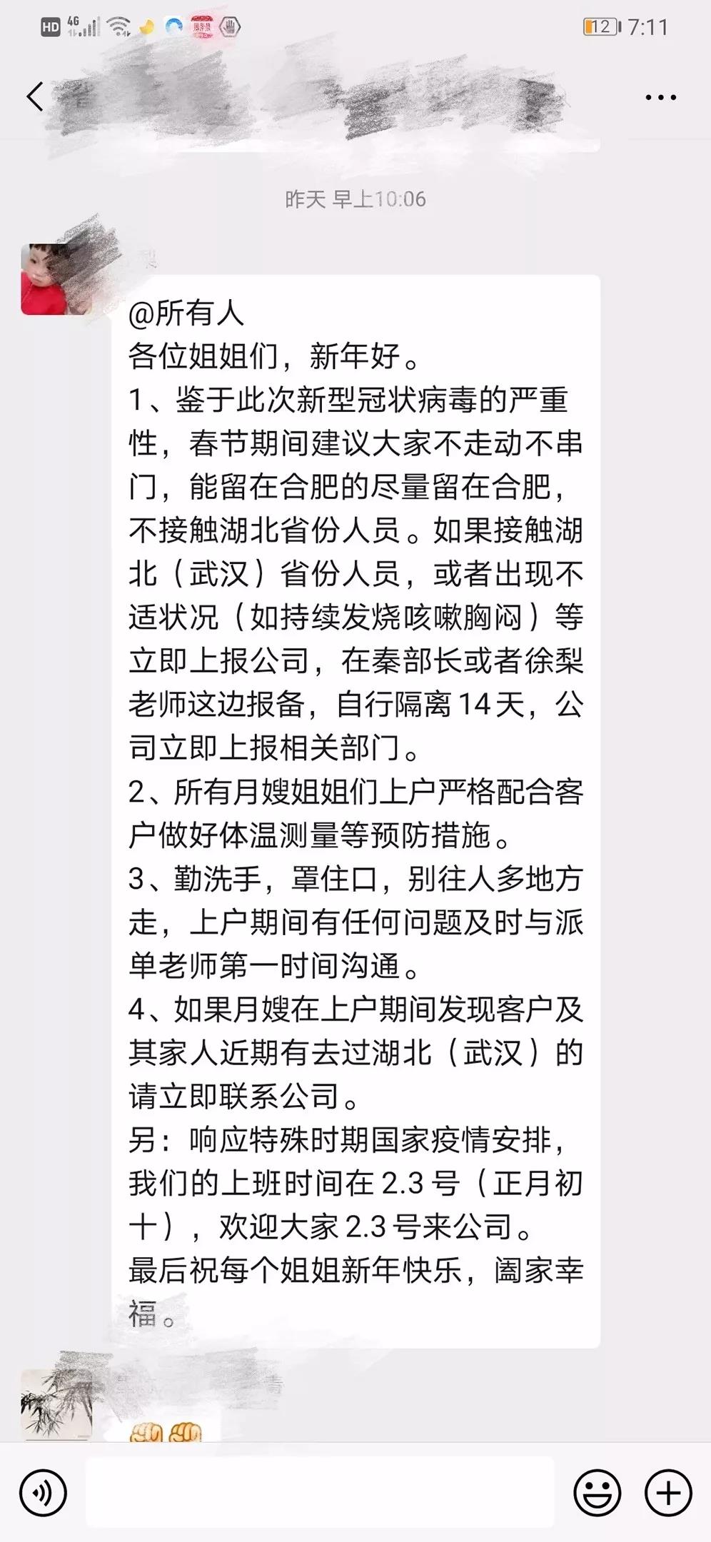 2、人力資源部已匯總公司全體職員新年期間所在地情況及計劃返肥時間,并發布內部公告通知途徑湖北地區或接觸過湖北(武漢)省份人員,返肥后需自行隔離14天;