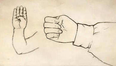 將大拇指扣在手心,指尖位于無名指(第四指)的根部,然后屈曲其余四指,稍稍用力,將大拇指握牢,如攢握寶貝一般。握固可以固守精氣神在體內(nèi),平時走路、坐車、閑聊、看電視時都可以握固。