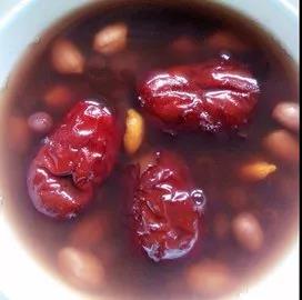 做法:準(zhǔn)備紅棗50克、花生80克、冰糖50克;將紅棗、花生洗凈,同放砂煲內(nèi),加清水適量;用武火煮沸后,改用文火煲至花生熟爛,加入冰糖再煲片刻,即可食用。此湯具有養(yǎng)肝、補(bǔ)脾和胃、養(yǎng)血止血的功效。