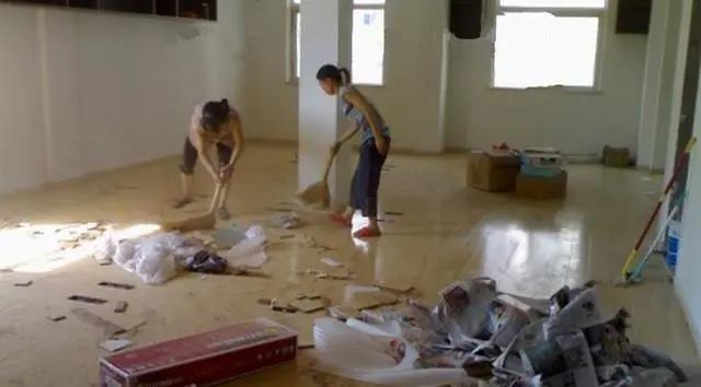 把所有的做完以后,最后就是地面的清洗了。清潔前,需要分清楚地面是木地板、瓷磚還是石材的,根據材料選擇專用清潔劑稀釋清洗。地面上的膠漬可用刀片清除,頑固的可用去膠劑處理;而對于地腳線,可用用毛巾擦拭,用刀片去掉各種膠跡、涂料點等。