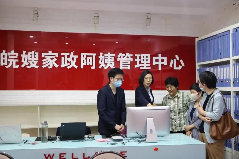 安徽省皖嫂家政公司總經理王成芳向領導們匯報了皖嫂家政公司在疫情期間全國首創線上月嫂見面會、開展家政公益大講堂、線上技能培訓,同時積極為合肥市總工會、淮北市婦聯拍攝微課堂網上技能教學等情況。
