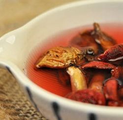 8、這是煲好的紅菇雞湯,湯色越紅表示壓制的時(shí)間越短,味道越鮮,喝前加點(diǎn)鹽。