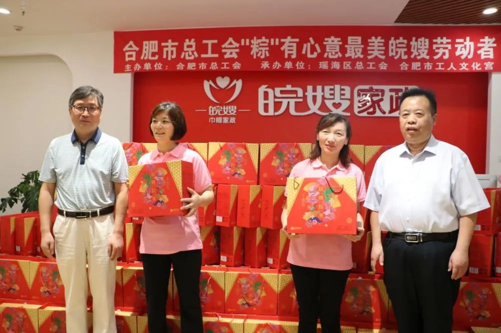 6月20日上午,在中國傳統節日“端午節”到來之際,瑤海區總工會主席陳慶常、文化宮主任朱紅巖、副主席江富貴、副主任崔春梅、文體活動部部長劉葆來到安徽省皖嫂家政服務有限責任公司婦幼旗艦店舉行“粽”有心意最美皖嫂勞動者慰問活動。
