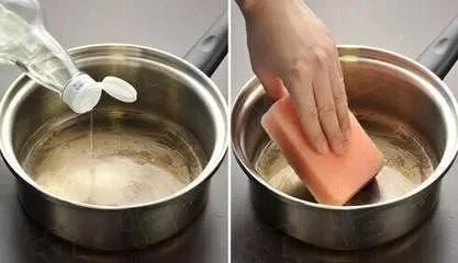 鍋底燒焦時(shí),只要加入一些水、一杯醋將其煮沸,當(dāng)開始發(fā)酵時(shí)再關(guān)火,添加一些蘇打水,當(dāng)作用停止后再把里面的液體倒掉。要是還有燒焦殘留,輕輕在鍋內(nèi)加入蘇打水擦拭即可。