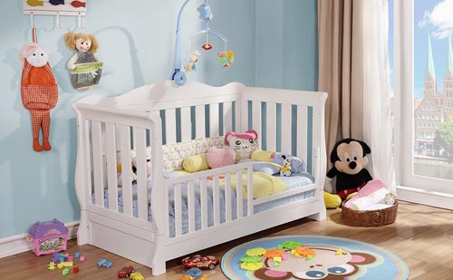 嬰兒床也不要靠近家具,避免家具滑倒傷害孩子,更不要靠近電源。嬰兒床可放在沒有門窗的那面墻,靠墻緊貼,一是可以避免嬰兒床翻動,二來可以避免孩子掉到床和墻的夾縫中。