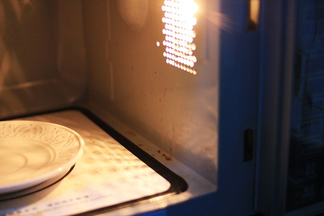 將白醋與水按照 1:4 的比例混合,攪拌均勻后,倒入容器中高火加熱 5 分鐘后,用布擦凈微波爐內壁即可。