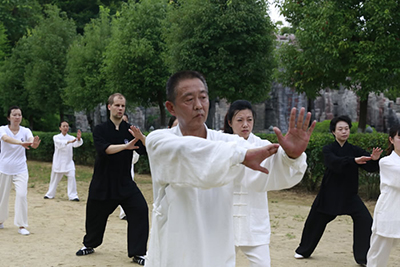 幫助老人適量運動,一起去跑跑步、游游泳、打打太極等提高肺功能。