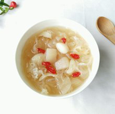 冬季容易出現口干唇焦等"秋燥"癥候,應選用滋養潤燥、益中補氣的食品,這類食品有銀耳、百合等。銀耳含有碳水化合物、脂肪、蛋白質以及磷、鐵、鎂、鈣等,具有滋陰、潤肺、養胃、生津的補益作用。百合也有養肺陰、滋肺燥、清心安神之功效。