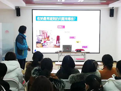 此次培訓活動由皖嫂家政培訓部的吳莉老師授課,收納整理是需要動手整理展示的一個過程,所以吳莉老師采用了現場實操展示為主,理論知識講解為輔的授課模式。吳老師向參加培訓活動的婦女同胞們講授了“整理五部曲”的具體內容,和在收納中碰到的問題以及解決方法,并邀請參加培訓的居民上臺演示,吳莉老師在旁指導,向婦女同胞們展示如何正確的進行收納整理,使得家庭空間更加整潔。居民們在吳莉老師的演示過程中聽課非常認真,驚嘆于老師的收納整理技巧。
