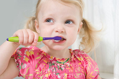 2、用頭小柄大的嬰兒軟毛牙刷。