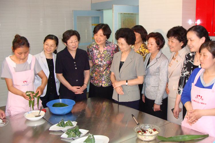 宋主席一行又來到我中心實訓室,我中心家政服務員正在學習包粽子。