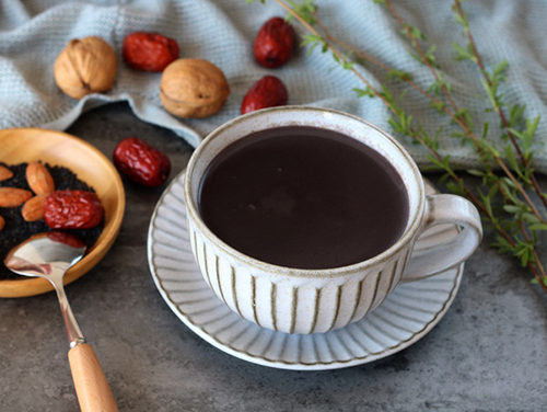 【做法】:黃豆、紅豆合并豆漿機量杯的2/3杯量,小米半杯,涼水泡發過夜;一把黑芝麻也用涼水泡發過夜;將泡好的黃豆、紅豆、黑芝麻、小米一起倒入豆漿機,煮開即可。如果沒有豆漿機,可用攪拌機將上述材料打碎后直接倒入鍋內煮開后再熬10-15 分鐘即可。紅糖佐食。
