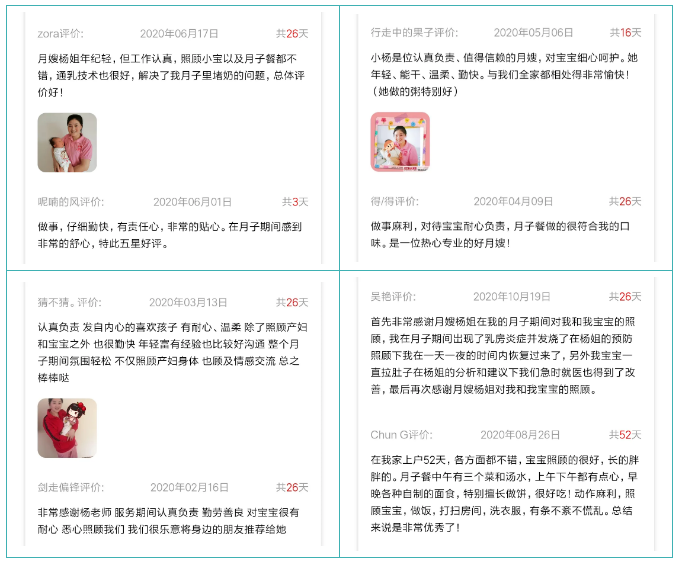 “每次我只要看到寶寶們可愛的笑臉,我就覺得能為小天使服務(wù)非常開心,照顧他們時,我也覺得非常快樂。看到寶媽身體逐漸恢復(fù),寶寶健康長大,我就覺得很有職業(yè)成就感,身為一名月嫂我很驕傲。”楊阿姨說。