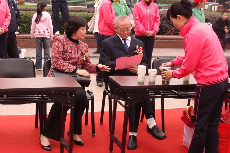 省人大副主任張俊和省婦聯主席黃紅在貴賓席上親切交談。