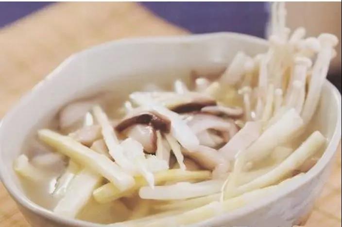 材料:香菇25克,竹筍15克,金針110克,清湯300克