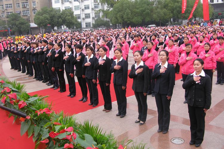 800名身穿統一制服的家政服務員進行了才藝表演活動,場面壯觀。