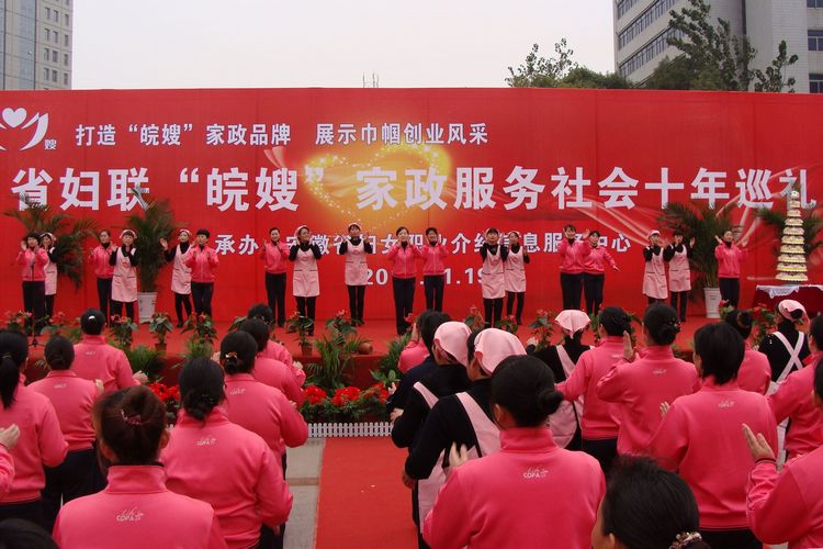巡禮活動現場,800名身穿統一制服的家政服務員進行了才藝表演活動,13個皖嫂服務網點店長親臨現場為廣大市民開展家政用工咨詢和免費用工登記,家政服務便民長廊上,由“皖嫂”家政服務員現場制作五彩營養水餃、家庭花卉小品贈送給觀眾,育嬰師們現場教授小朋友們折疊紙藝。