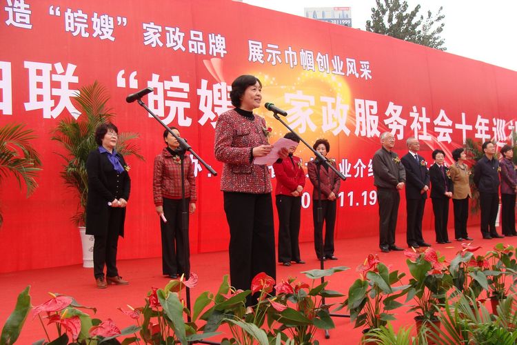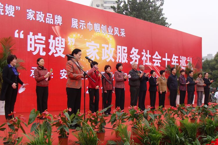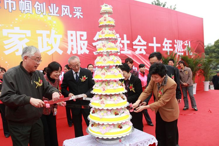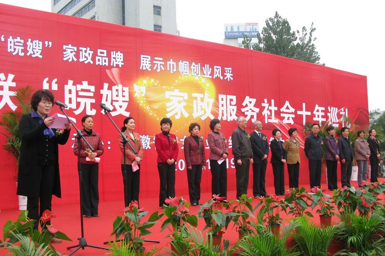 儀式上,安徽省婦女職業介紹信息服務中心宛志英主任回顧了皖嫂家政服務社會十周年走過的發展道路,一批優秀家政服務員受到表彰。儀式最后,領導、來賓和優秀家政服務員代表共同為象征“皖嫂”發展歷程的十層蛋糕剪彩。