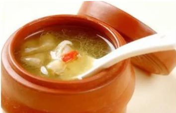 3.砂罐洗凈,放清水40O克,放入全雞。燒開后撇去浮沫,加黃芪、當歸、用小火燉2小時左右,雞肉粑時加入精鹽,再燉二分鐘即可食用