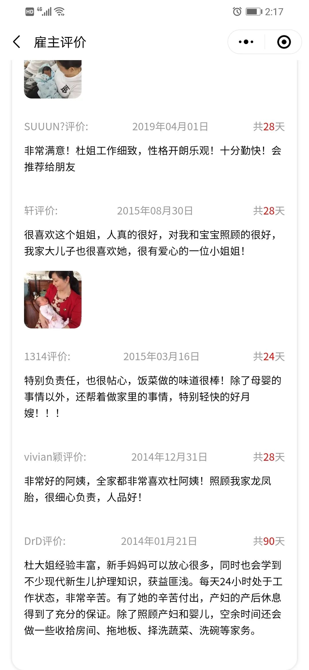 杜姐為人誠懇,性格開朗,勤勞能干,業(yè)務(wù)熟練,經(jīng)驗豐富,不僅是專業(yè)照顧小寶寶的好阿姨,也是悉心照料產(chǎn)婦生活的好大姐,是一位特別優(yōu)秀的好月嫂......