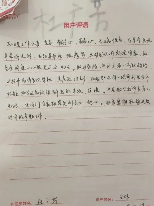 出院后,杜姐通過一個月的悉心護理,寶寶各方面體征很快恢復(fù)正常。下戶的時候,寶媽一家也非常念念不舍。杜姐說,于她而言,經(jīng)過一個月的相處,她和寶媽一家也成為了很好的朋友。在往后的這些年,寶媽也給她推薦了很多的客戶,包括很多客戶的二寶也指名要她來上戶。
