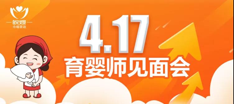 4月17日9:00《育嬰師見面會》第7期重磅來襲!幫您解決找阿姨的各種煩惱,現(xiàn)場還有阿姨技能展示環(huán)節(jié)哦!最勁爆的是當(dāng)日簽單,送豪華大禮包現(xiàn)場簽到,還送皖嫂定制水杯一個!