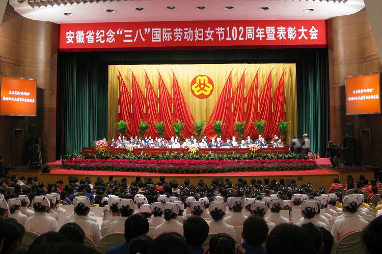 2012年3月2日上午,安徽省紀念“三八”國際勞動婦女節102周年暨表彰大會在安徽大劇院隆重舉行。省委常委、組織部長王炯、省人大常委會副主任胡連松、省政府副省長花建慧、省政協副主席張學平、省軍區副政委周俊,原省人大常委會副主任應宜權、高福明等出席會議并為受到表彰的先進集體和先進個人頒獎。省婦聯主席黃紅致辭,省婦聯副主席邢江霞主持會議。