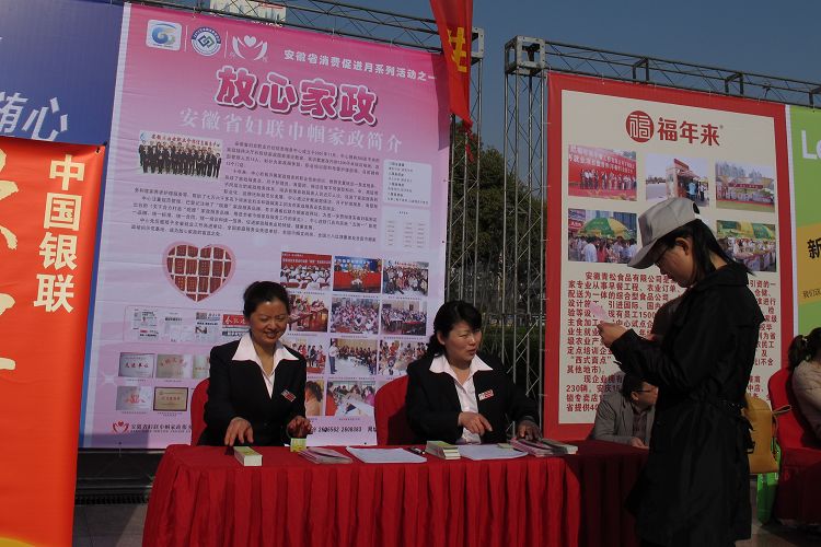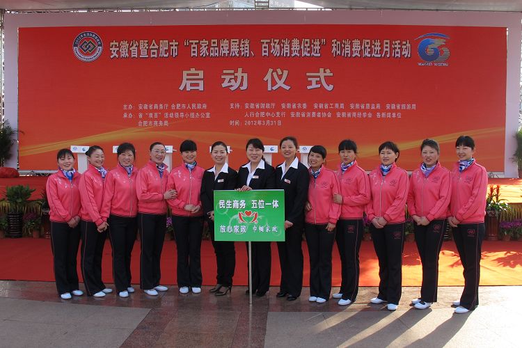 2012年3月31日上午,春光明媚,安徽省暨合肥市“百家品牌展銷、百場消費促進”和消費促進活動啟動儀式在合肥市府廣場隆重舉行,我中心宛主任率隊參加了啟動儀式。儀式結束后,副省長花建慧和省商務廳廳長方西屏同志來到我中心咨詢臺,并與宛主任親切握手交談;花建慧副省長對中心工作和成績給予了支持和肯定,并祝愿皖嫂家政越辦越好!