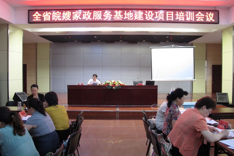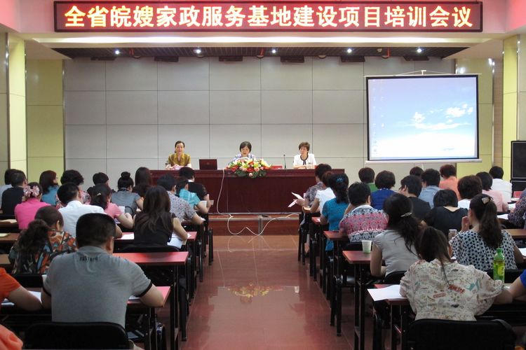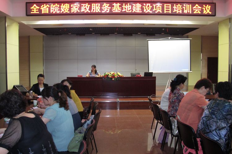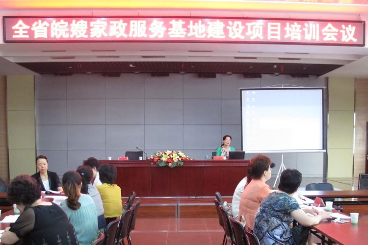 【巾幗家政訊】6月12日下午,全省皖嫂家政服務基地建設項目培訓會議在我中心隆重舉行!省婦聯主席黃紅、副主席邢江霞、李素萍等領導同志到會。出席會議的還有全省16個地市的婦聯主席和各地市皖嫂家政服務示范基地負責人。為建設好皖嫂家政服務各地市示范基地建設,會議日程一共為兩天,將進行密集的強化培訓,以提高各地市的皖嫂家政服務基地項目建設水平。