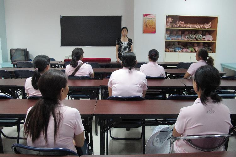 中心經常性地對保潔員進行分批培訓,圖為儲部長正在給保潔員上課。
