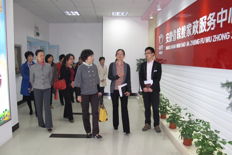2012年10月30日上午,天津市婦聯代表團一行,來到省皖嫂家政服務中心參觀學習。陪同參觀的有省婦聯發展部部長潘核清同志、省婦女兒童活動中心主任姜震同志等。
