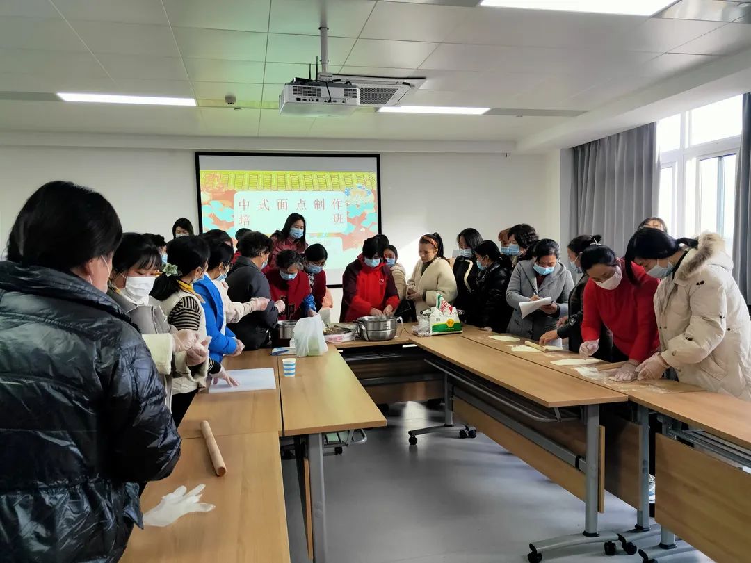 11月23號下午,皖嫂家政集團受合肥市義城街道婦聯(lián)邀請,來到包河區(qū)迎淮社區(qū),為婦女同胞們開展中式面點制作方面的技能培訓(xùn)。