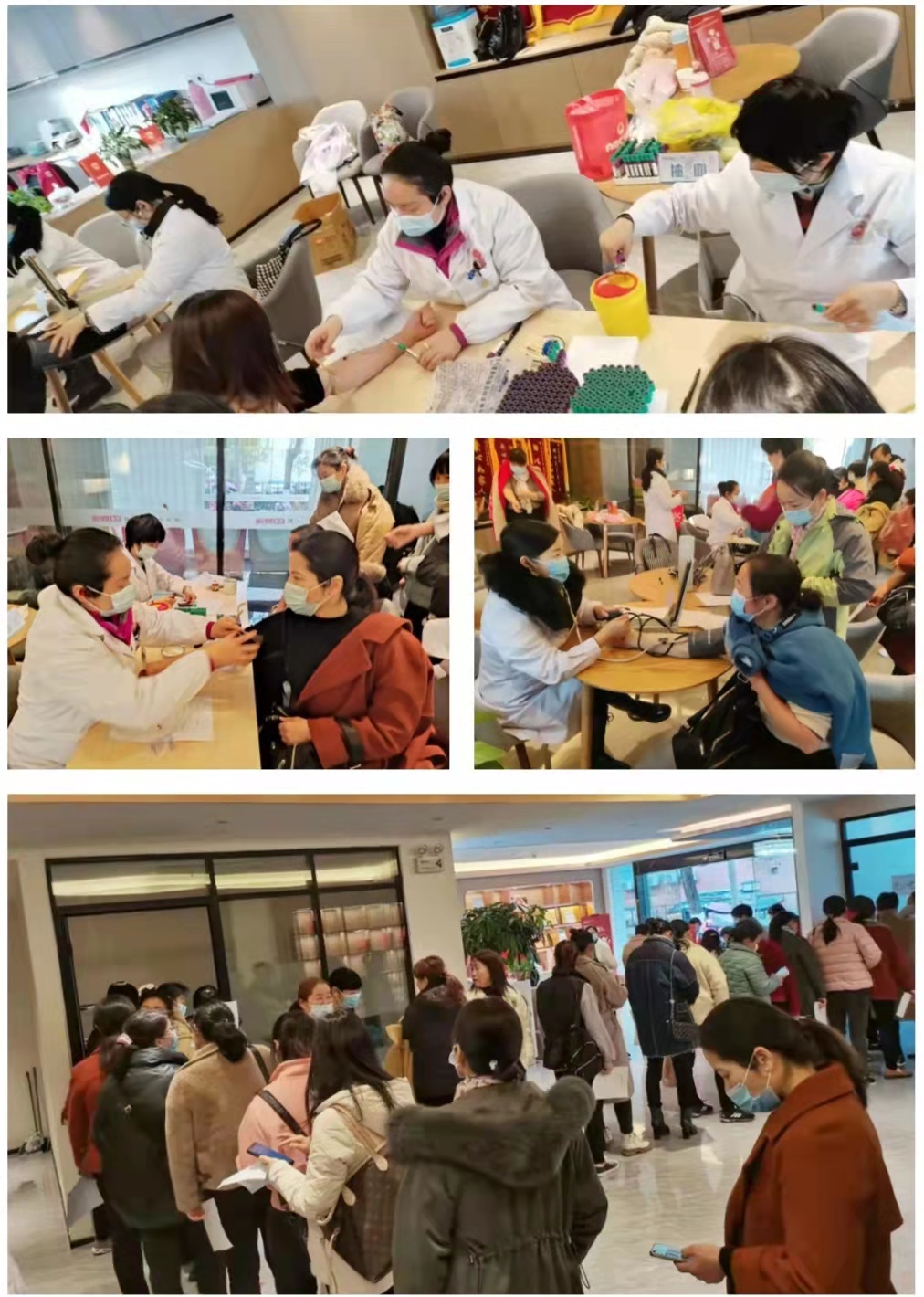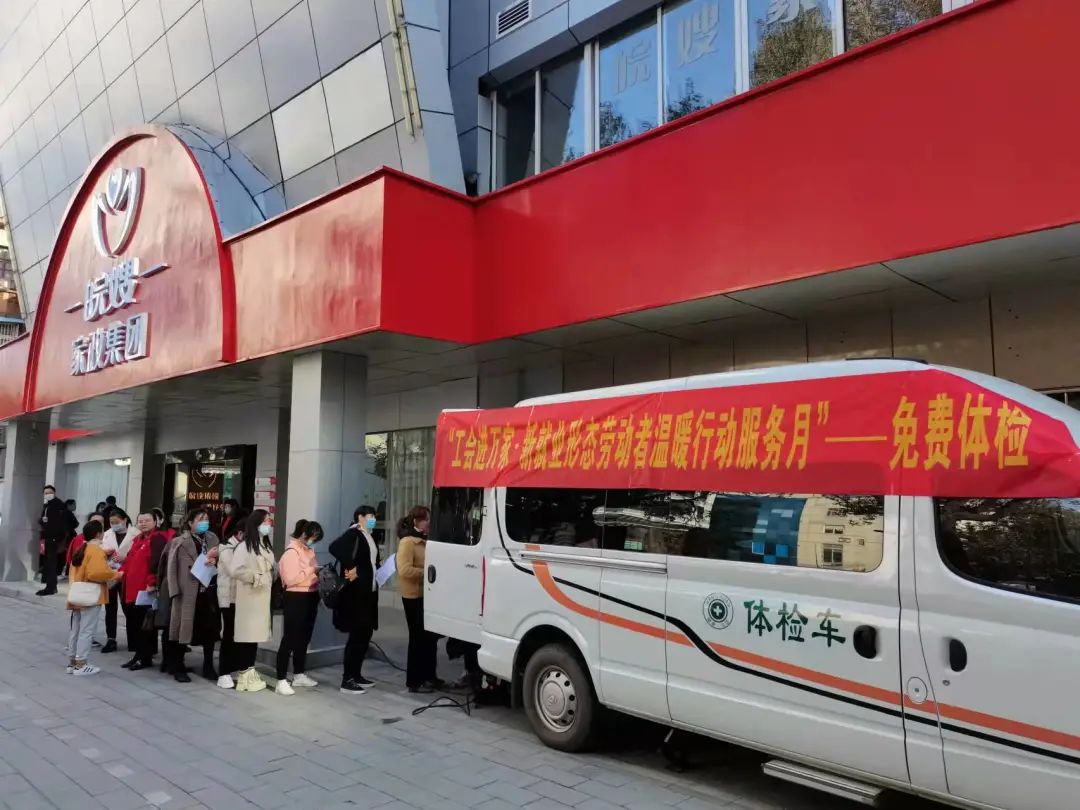 皖嫂姐妹們有序地排隊進行采血、量血壓、胸透等體檢項目。平日里,月嫂、育嬰師入戶服務一做就是連續二十多天,很少能有時間關注自身健康狀況更不用說抽出時間去醫院體檢了。工會為家政服務員——這一新就業形態勞動者想到了他們的職業特殊性,把溫暖與關愛送到他們身。