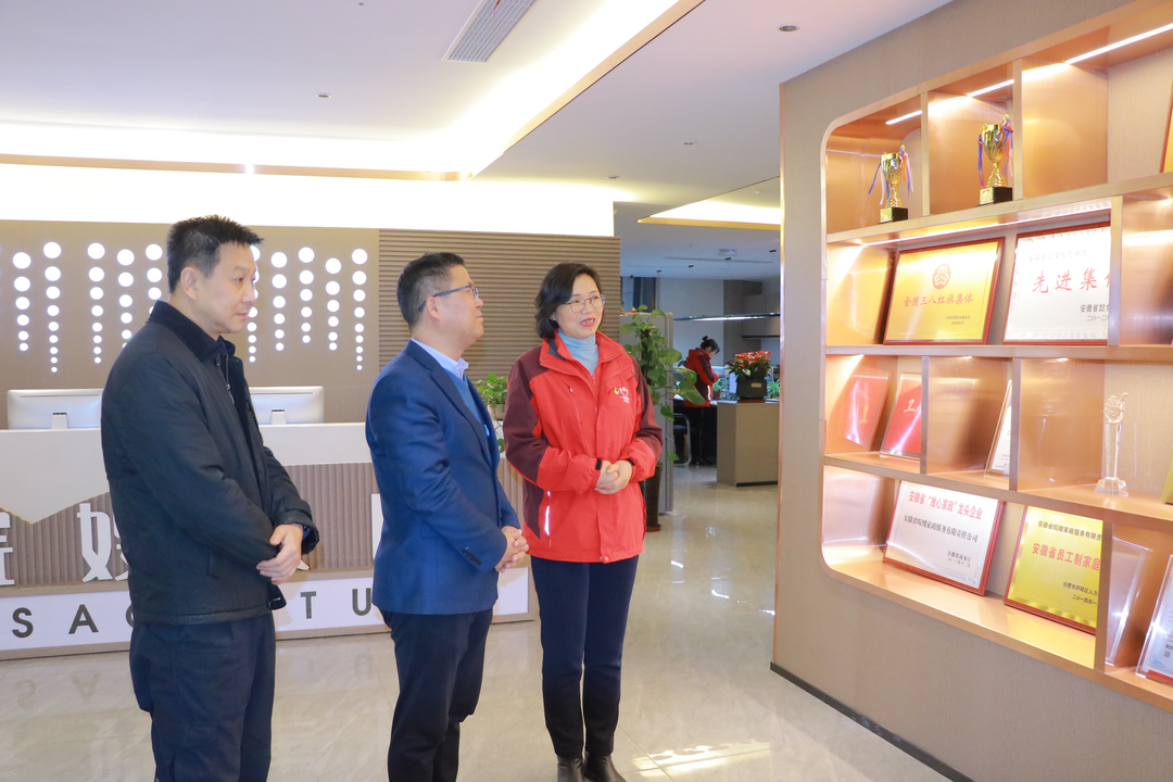 12月24日,合肥市總工會副主席梁建文一行到皖嫂家政頒發“模范職工之家”榮譽獎牌,市總宣教部部長王輝、副部長湯賢德、基層部副部長周衛華、廬陽區總工會黨組書記夏輝、廬陽區總工會副主席郭戰陪同。