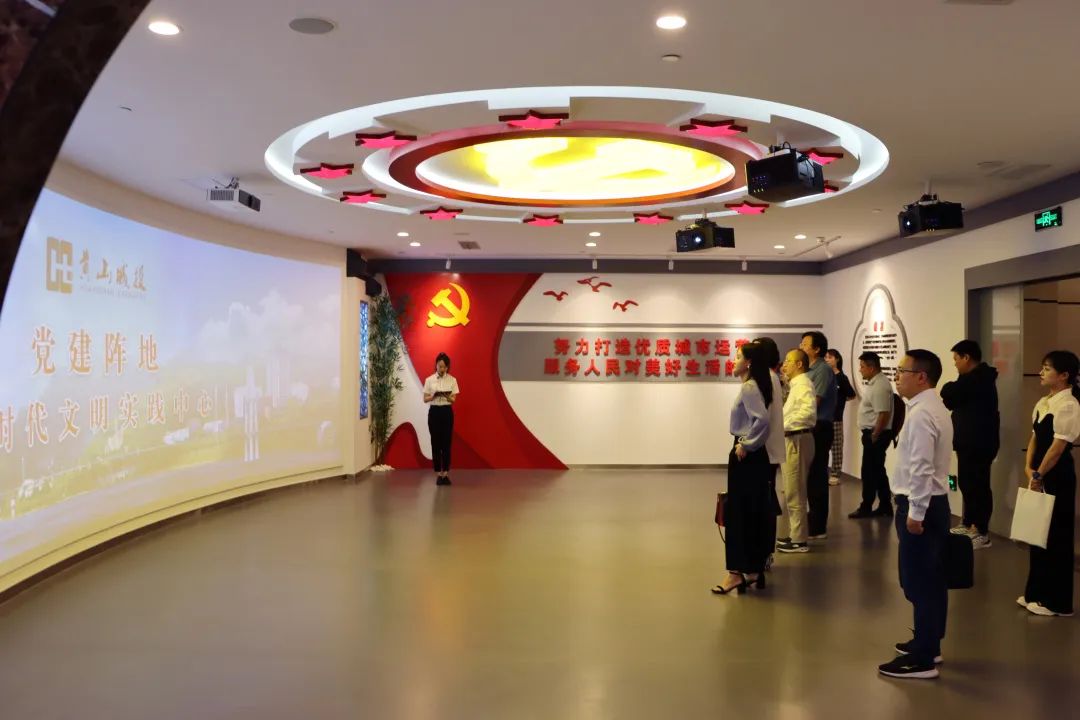 黃山城投集團總裁黃世穩陪同考察團一行參觀了黃山城投集團,詳細介紹了城投集團發展歷程以及黨建文化建設情況。