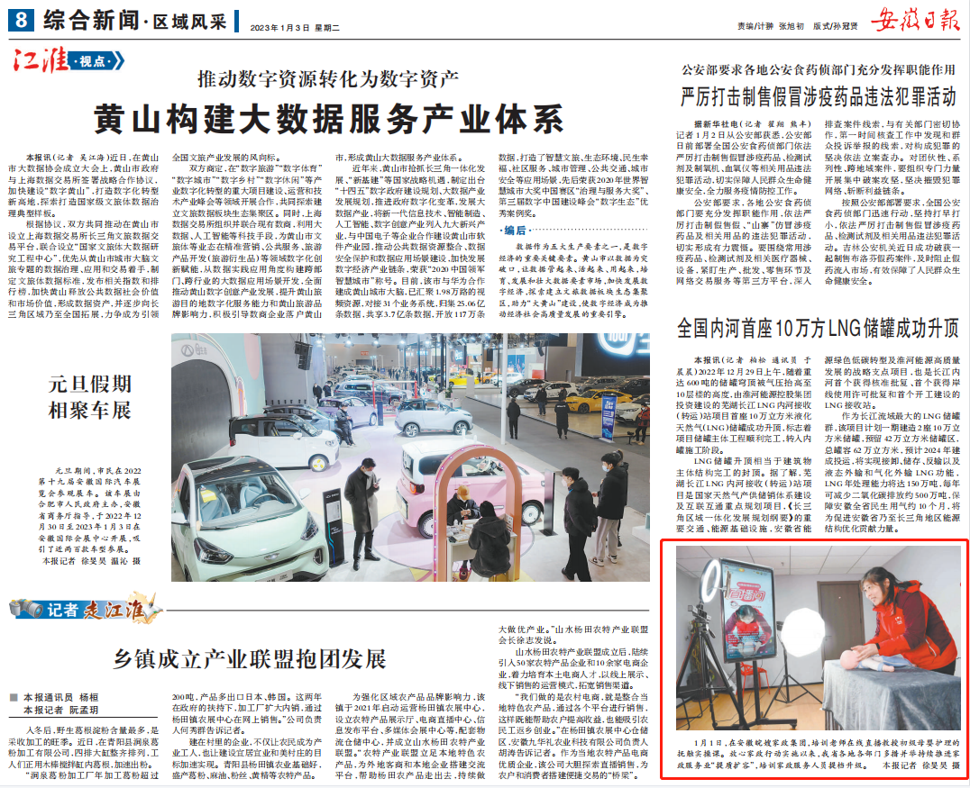 2023年1月3日安徽日報報導了安徽省皖嫂家政集團元月1日開展的“放心家政線上技能培訓”。