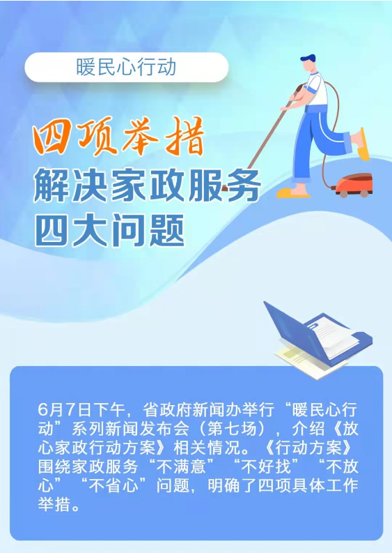 2022年5月,為進一步做好保障和改善民生工作,省委、省政府高度重視家政服務工作,出臺《放心家政行動方案》。
