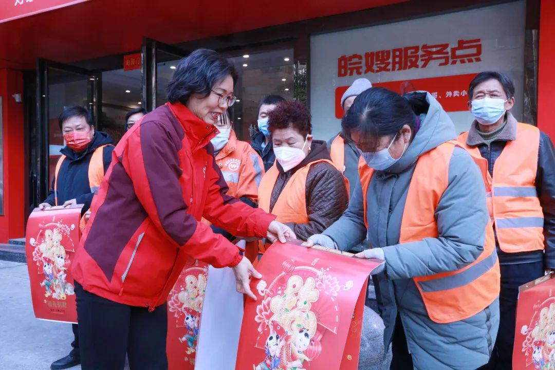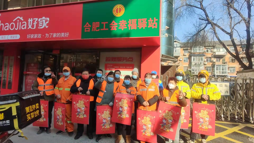 安徽省皖嫂集團黨支部及工會向堅守崗位的環衛工人和外賣小哥送上了一份份新春祝福,感謝他們的辛勤勞作,并提醒大家在工作過程要做好自身防護及防寒保暖,提前祝大家春節快樂!