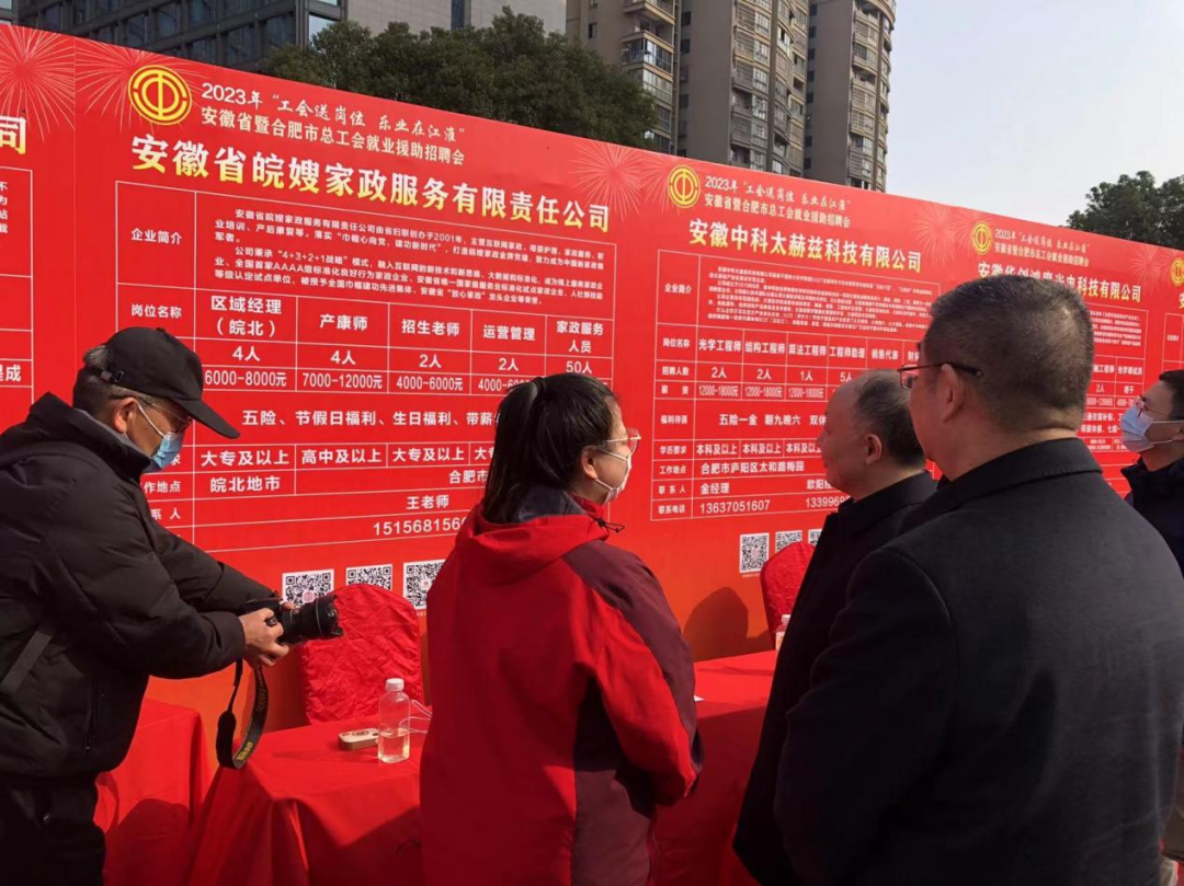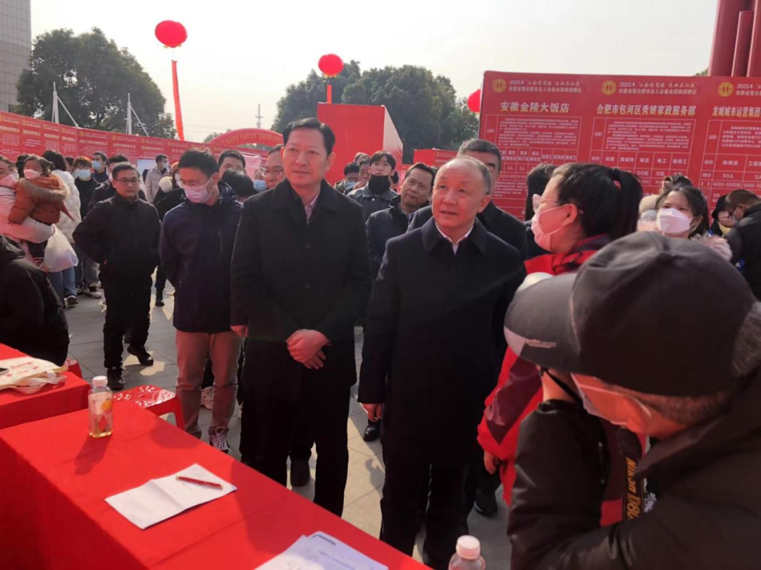 2023年2月3日上午9:00-12:00,安徽省暨合肥市工會就業援助集中行動在合肥市新站高新區舉行了“工會送崗位 樂業在江淮” 活動,安徽省總工會黨組書記、副主席徐發成、市總工會主席張業鎖等領導參加。