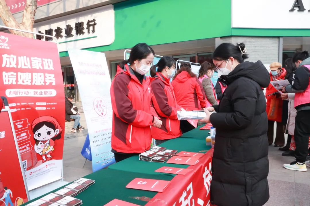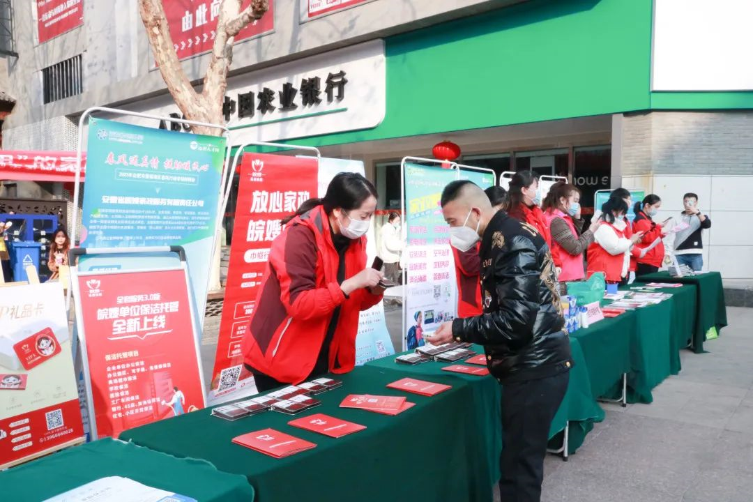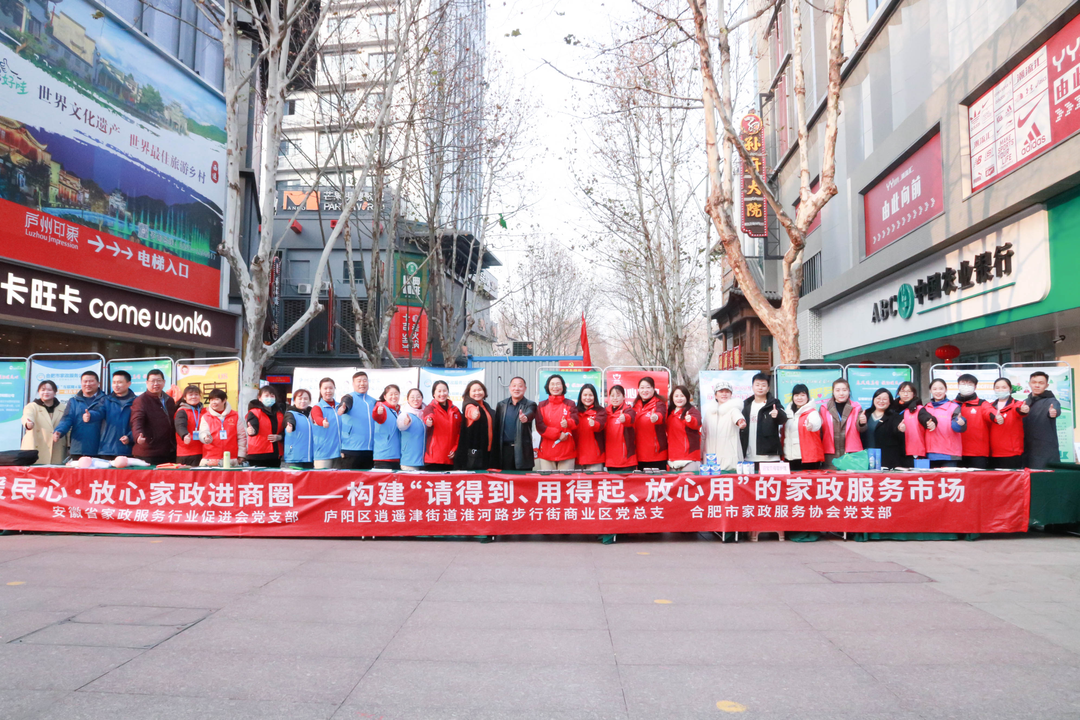 2023年2月4日,立春時節,安徽省家政服務行業促進會黨支部、合肥市家政服務協會黨支部、廬陽區逍遙津街道淮河路步行街商業區黨總支部共同開展本次“暖民心·放心家政進商圈”活動,為構建“請得起、用得起、放心用”的家政服務市場進行相關政策宣傳和發放優惠券,安徽皖嫂家政積極參加本次活動。