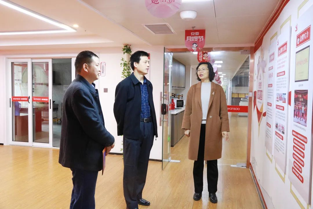 皖嫂集團總經理王成芳陪同王院長一行參觀了職工書屋和好寶寶托育中心,并介紹了皖嫂家政金牌黨建文化,重點參觀了中澳皖嫂家政學院的校外實訓基地——皖嫂巾幗培訓學校。