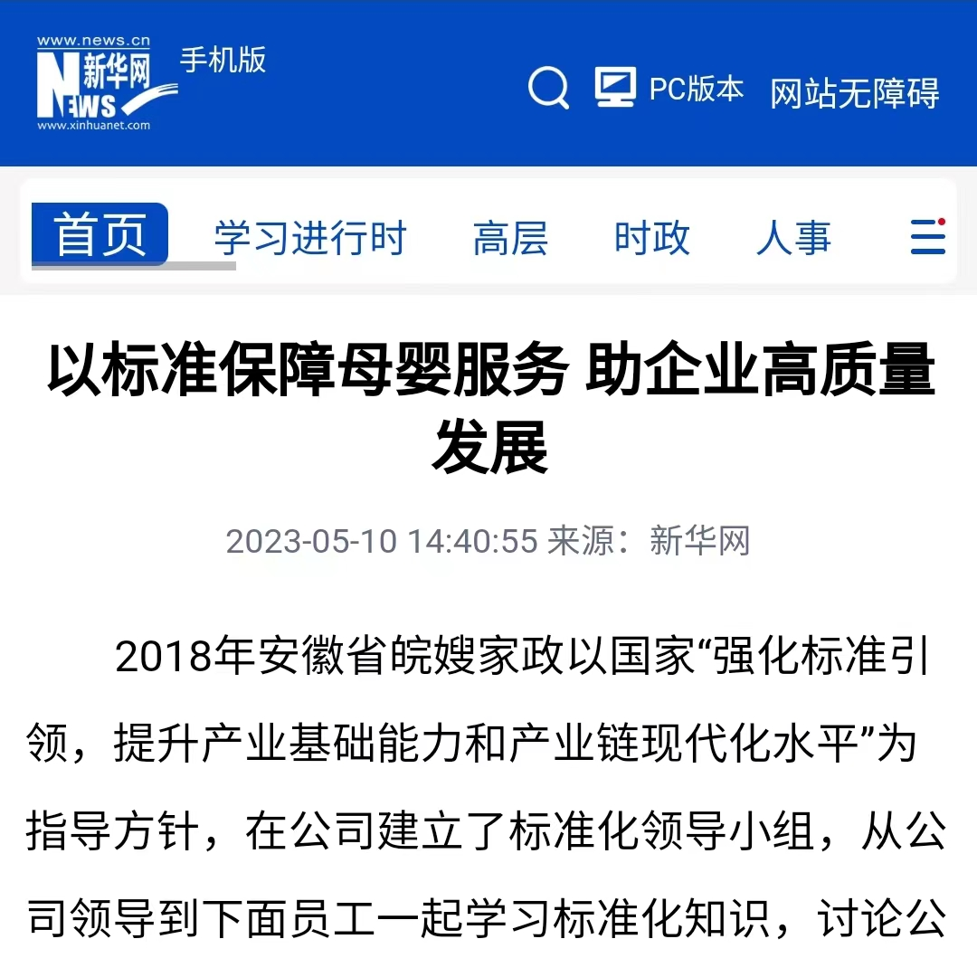 安徽省皖嫂家政以國家“強化標準引領,提升產業基礎能力和產業鏈現代化水平”為指導方針,在全國家政行業率先創建家政服務人員3+X誠信體系,建立皖嫂家政標準化管理體系,主導制定省、市地方標準9個,以標準化為核心,成為全國巾幗建功先進集體、安徽省皖美品牌示范企業、廬陽區老字號企業,助推企業在行業中實現彎道超車。