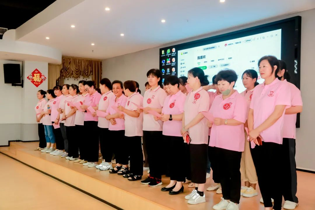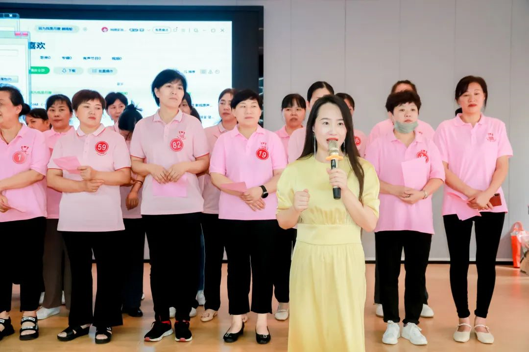 近50位金牌月嫂代表集中登臺亮相,她們統一著裝,精神飽滿。