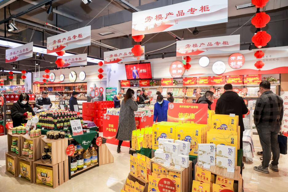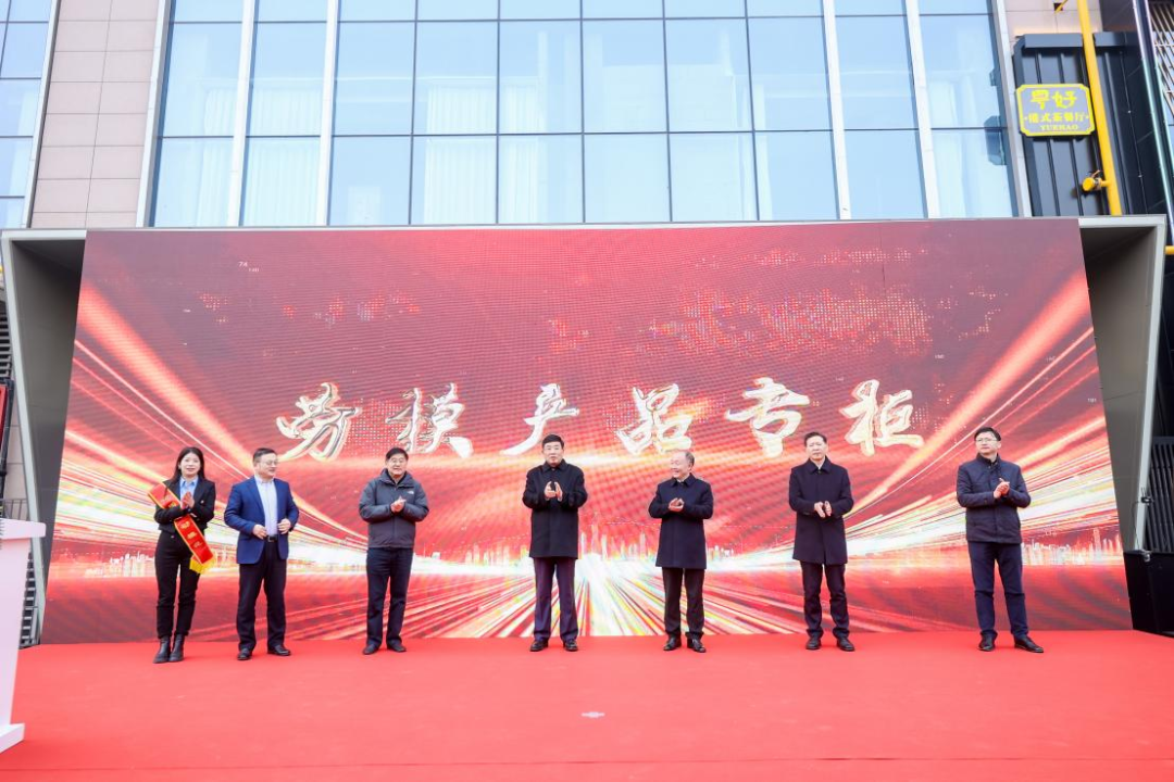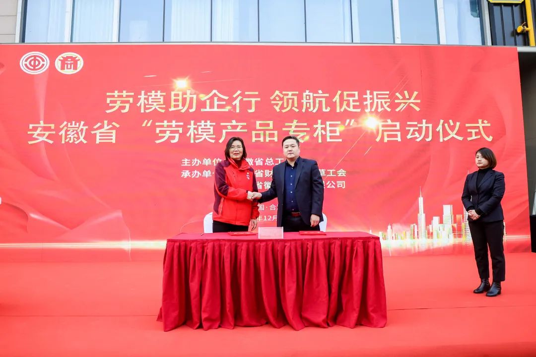 12月29日,由安徽省總工會主辦,安徽省財貿輕紡煙草工會、安徽省徽商集團有限公司共同承辦的“勞模助企行,領航促振興”暨“安徽省勞模產品專柜”啟動儀式在徽商紅府超市優山美地店舉行。