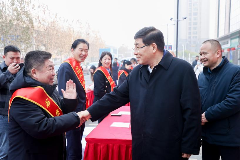 啟動儀式開始前,何樹山與勞模親切交談并握手。