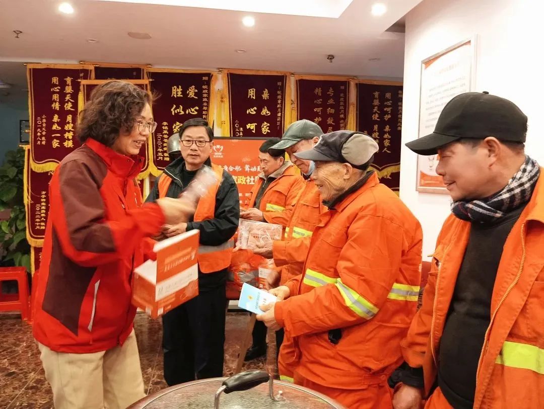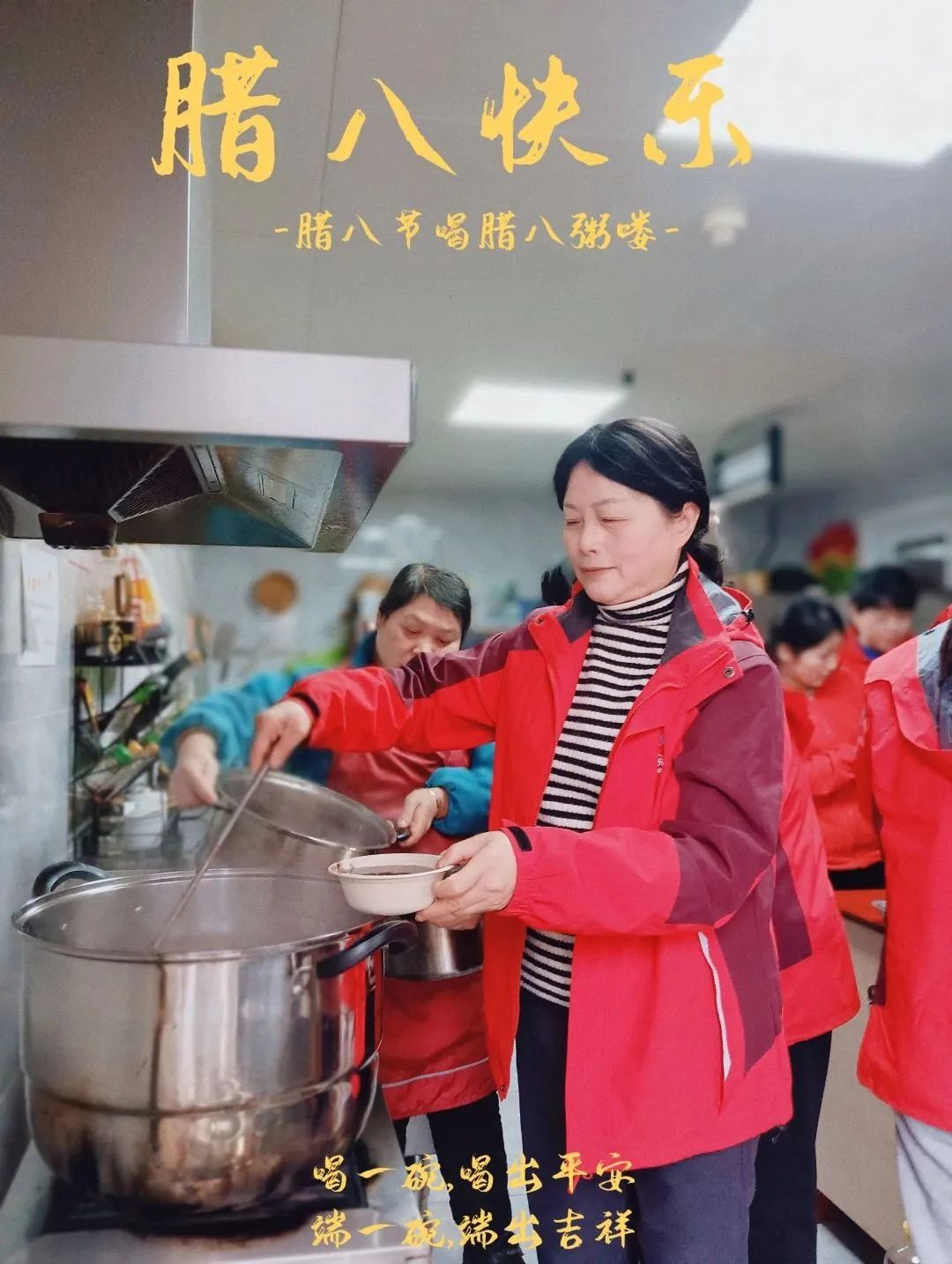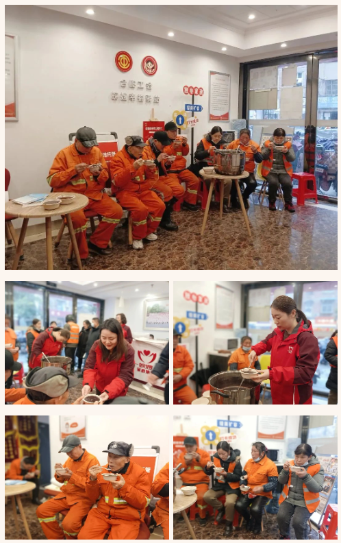 皖嫂家政黨支部書記王成芳為轄區(qū)戶外環(huán)衛(wèi)工人及皖嫂一線職工們送上熱氣騰騰的臘八粥,借用“粥”與周的諧音祝福大家事事“粥”全、事事“粥”道。