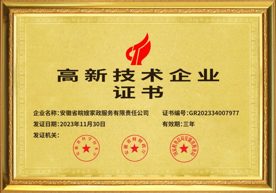 2024年《政府工作報告》提出,要大力推進現代化產業體系建設,加快發展新質生產力。此次被認定為高新技術企業,是對皖嫂家政在家政服務行業科技創新實踐和發展成果得到了國家層面的認可,皖嫂家政將以此為契機,繼續深耕家政服務領域,發揮高新技術企業和專精特新企業優勢,不斷探索新技術、新業態和新模式,持續為消費者提供高品質服務,讓“創新”成為安徽家政品牌的“閃亮”名片。