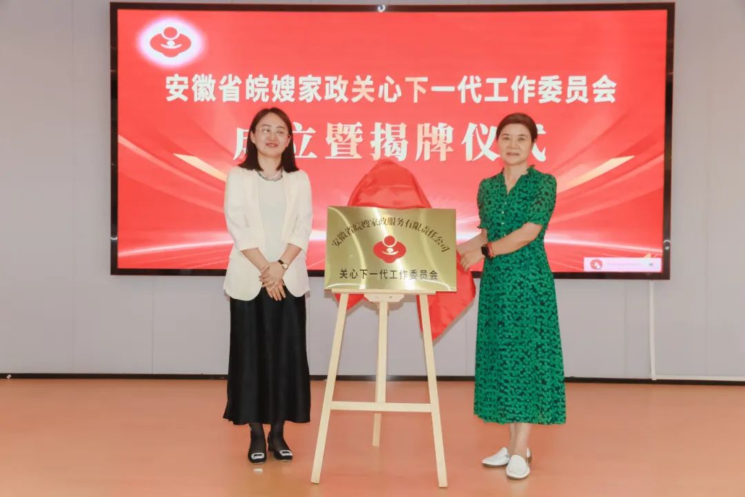 曹佑華與丁筱梅共同為安徽省皖嫂家政關(guān)心下一代工作委員會揭牌。